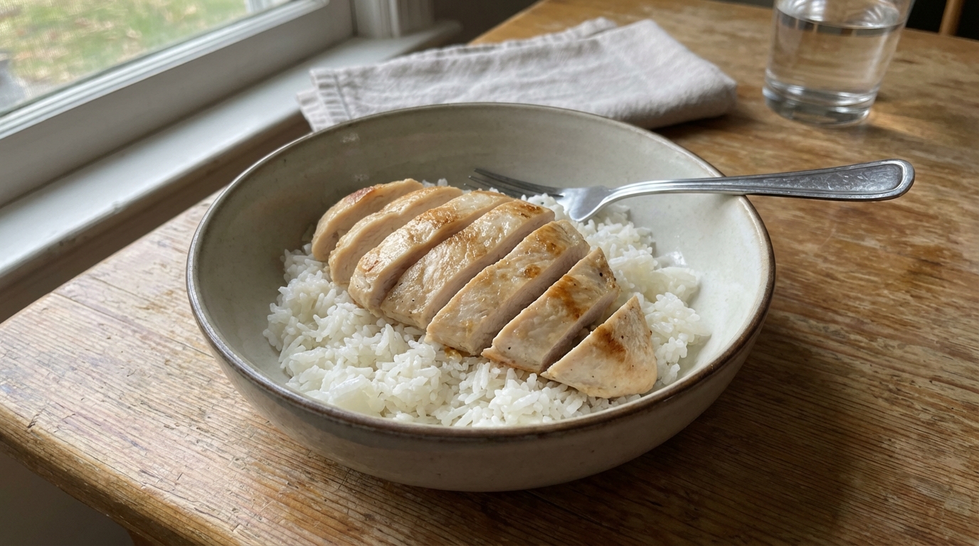 This recipe focuses on simplicity and balance. Chicken breast provides lean, high-quality protein that supports muscle repair and keeps you feeling full. Rice supplies carbohydrates that help maintain energy levels throughout the day. Together, they create a satisfying meal without unnecessary ingredients or complicated preparation steps. This dish can be eaten for lunch or dinner and can be adjusted easily based on portion size.